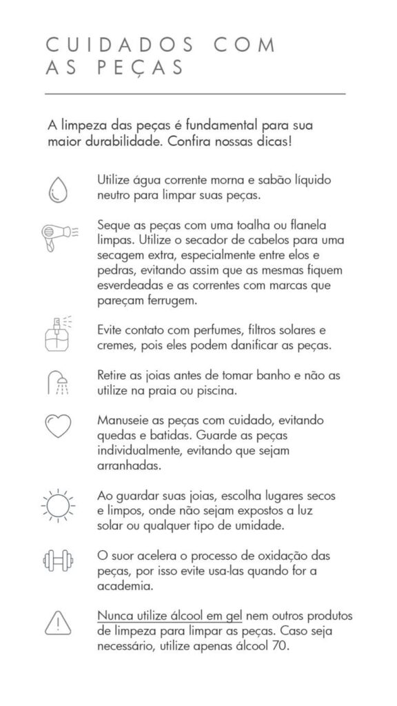 Nossas peças não possuem o níquel em sua composição e utilizamos também uma camada antialérgica reduzindo as chances de alguma reação e recebe o banho, acrescentamos também um verniz de proteção que garante uma durabilidade maior da peça.