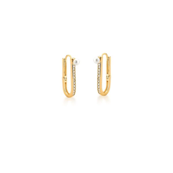 Argola cravejada com zircônias brancas e pérola