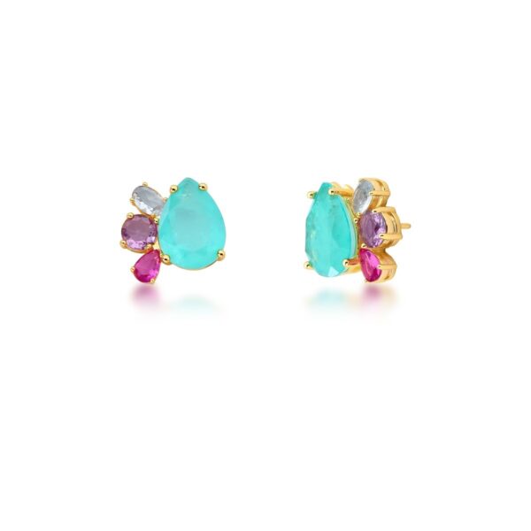 Esse brinco com cristal em gota fusion turmalina e zircônias coloridas, é glamoroso e trás cor ao look.