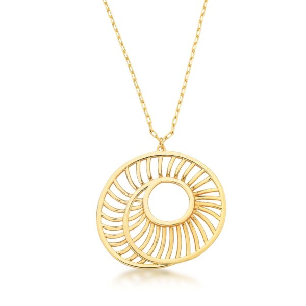 Outras referências aos elementos dessa estética são incorporadas nesta coleção como os círculos e os designs estaiados em peças no banho de ouro.