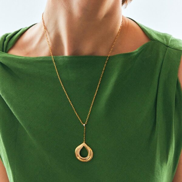 Colar Gravata Com Pingente De Gota Com Zircônia Banho 18k