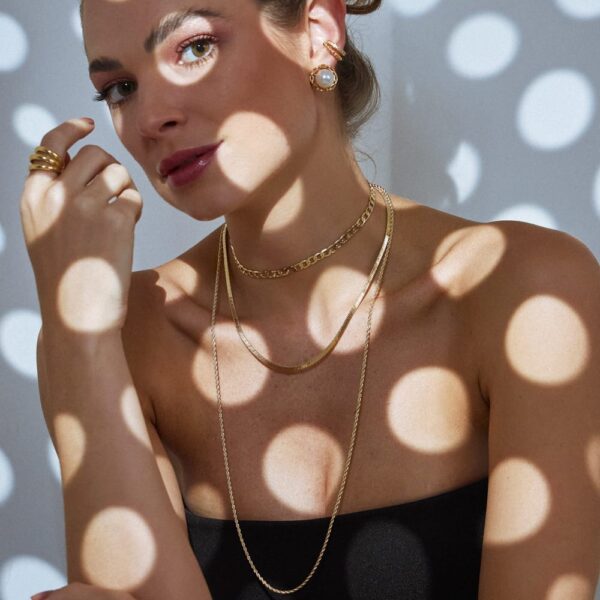 É um estilo sofisticado e elegante que consiste em fios trabalhados que se retorcem e se assemelham a uma corda. Pode ser usada sozinha, ou incrementada com pingente valorizando ainda mais a peça.